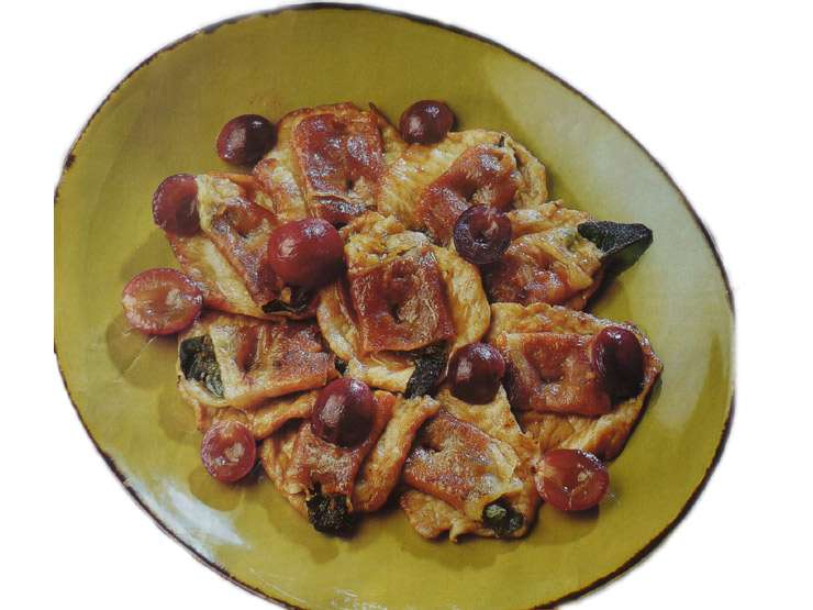 4) Añadir, si es necesario la salsa con sal, sazonar con una ligera molienda de pimienta y freir a fuego medio durante 3-4 minutos antes de volver a poner los saltimbocas,para cocinarlos el tiempo justo para que se calienten (es decir, un par de minutos ). Apague el fuego y transferir las rebanadas en un plato de servir,y llevarlos enseguida a la mesa con su sabrosa salsa de uvas.